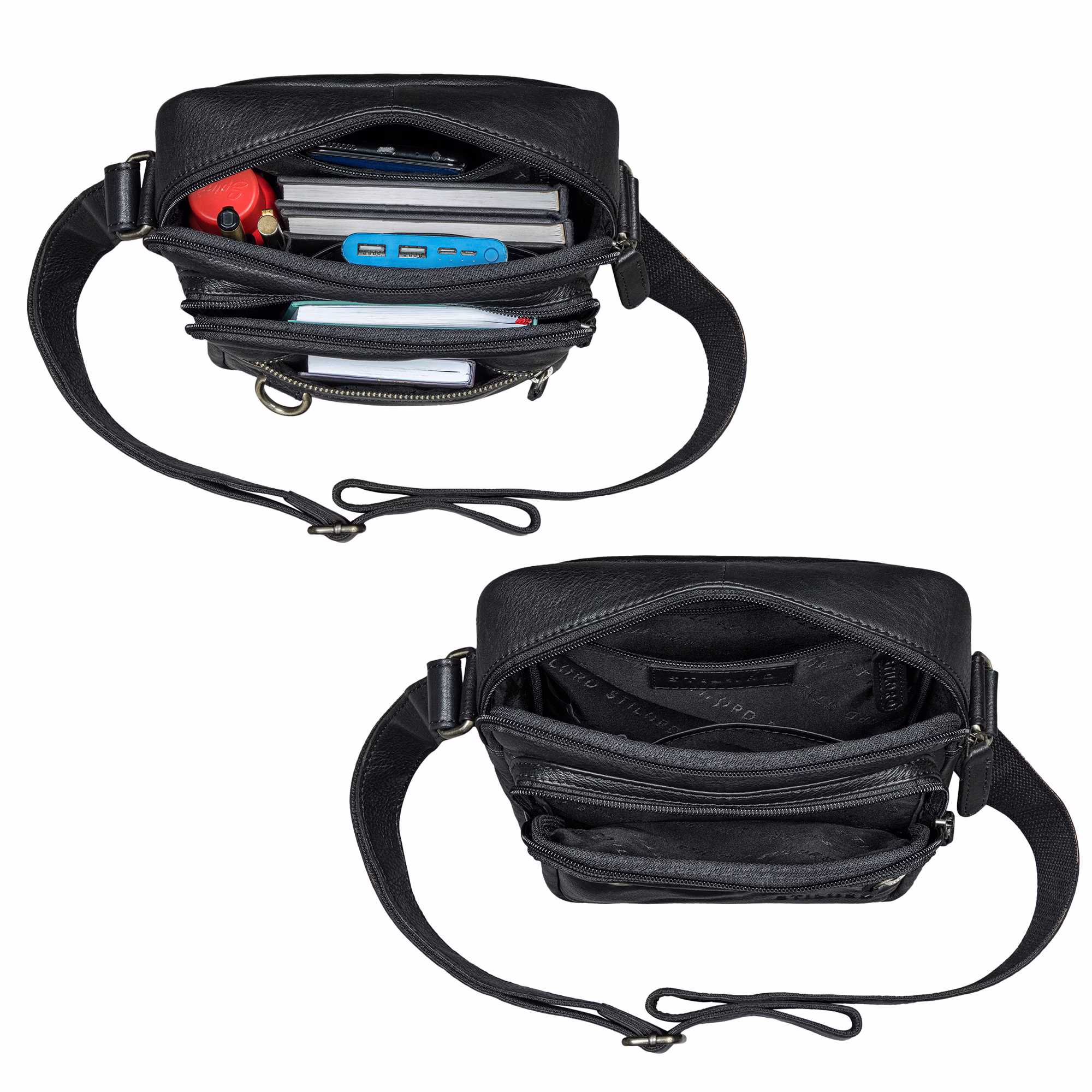 - TODOS LOS DETALLES DE UN VISTAZO: Dimensiones (L x H x P): 21 x 31 x 7 cm | Peso: 530 g | Material: cuero auténtico de vaca | Correa ajustable (70 – 145 cm | 3 cm de ancho) | Distribución: 1 compartimento principal, 2 portabolígrafos, 3 bolsillos con cremallera, 1 bolsillo interior, 1 gancho de mosquetón | Compatibilidad: iPads hasta 10,9 pulgadas (18 x 25 cm), documentos DIN A5 y botella de 0,5 l