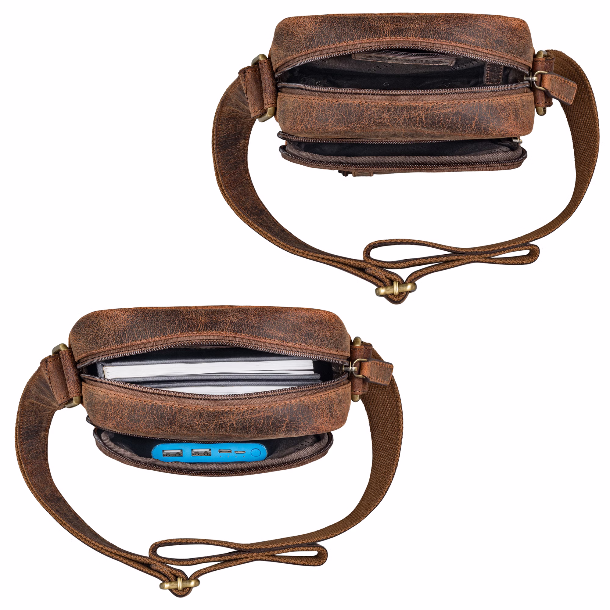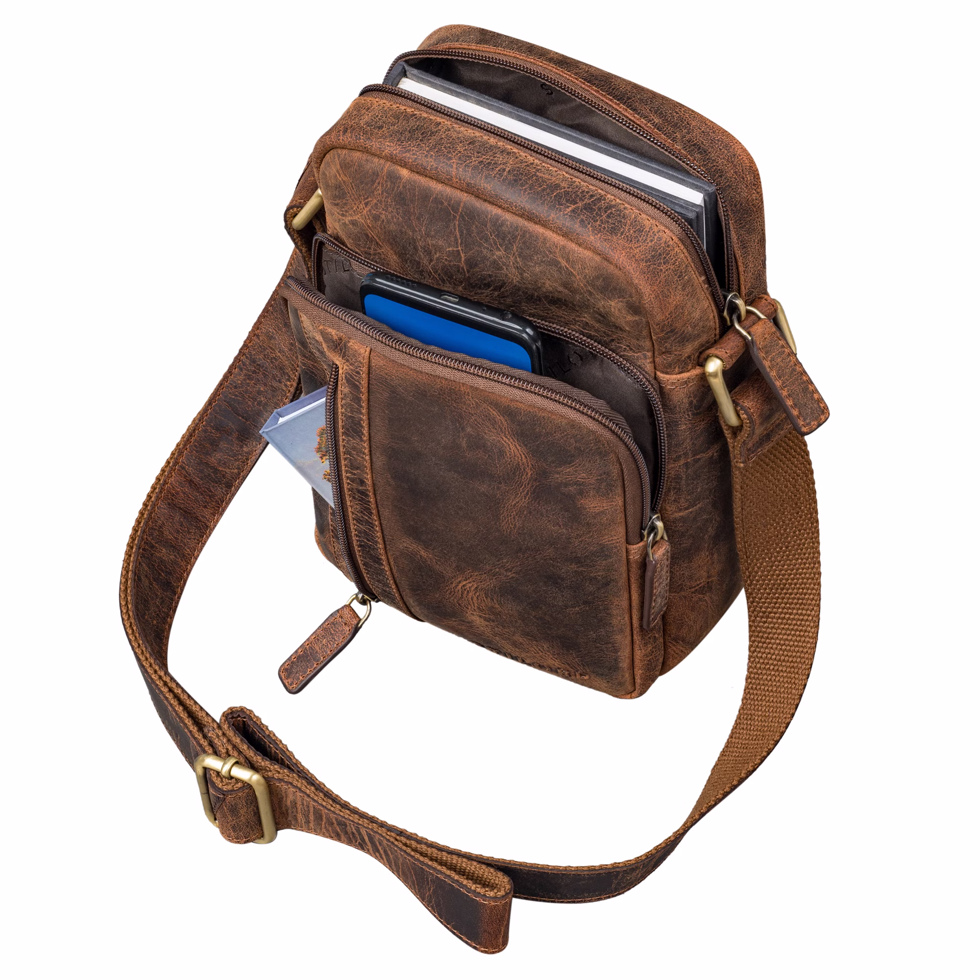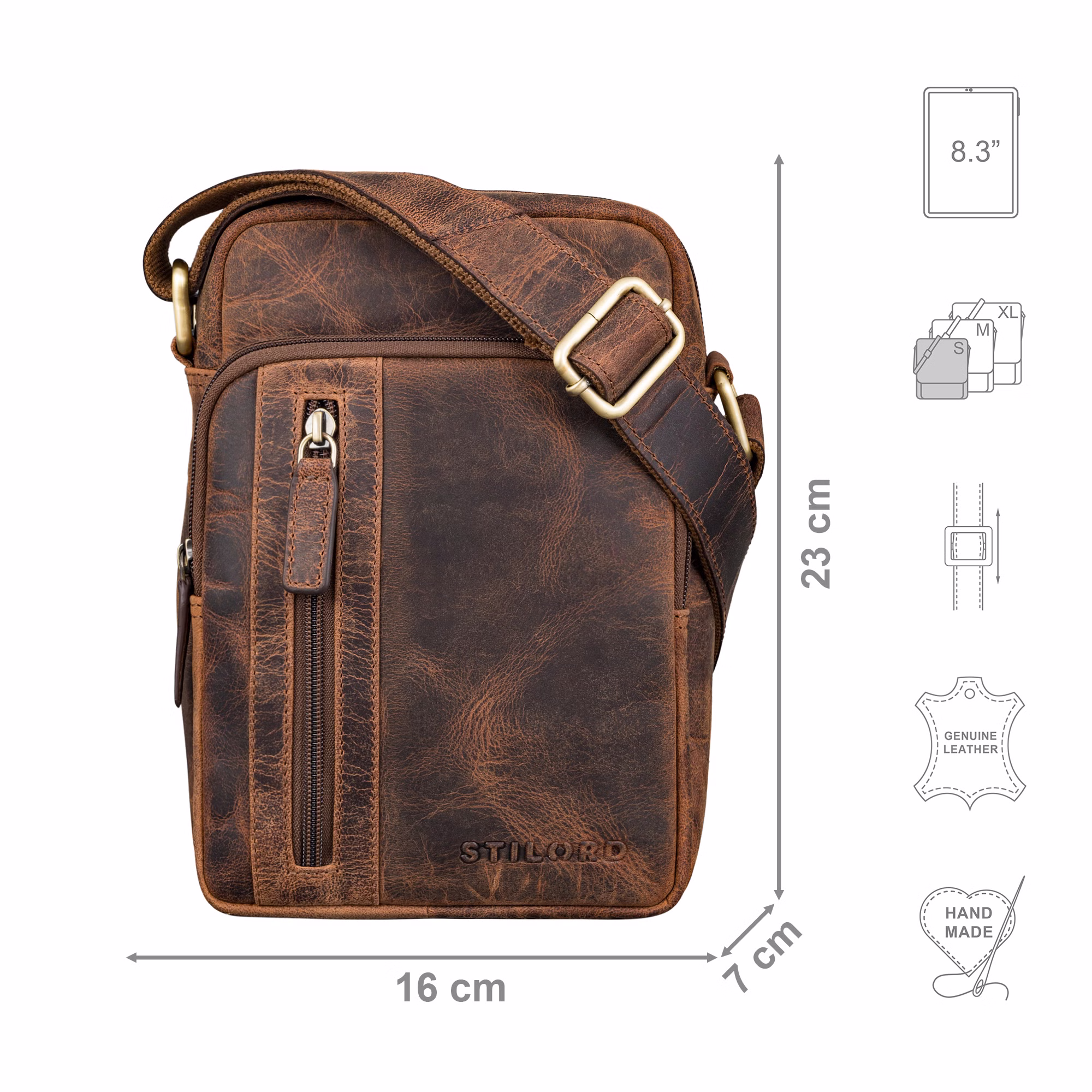 - COMPACTO Y BIEN DISEÑADO: Este bolso de cuero para hombre ofrece el espacio perfecto para lo esencial: tablet, cartera, llaves, auriculares y tarjetas. Compatible con tablets de hasta 8,3 pulgadas y diseñado para llevar todo en orden.