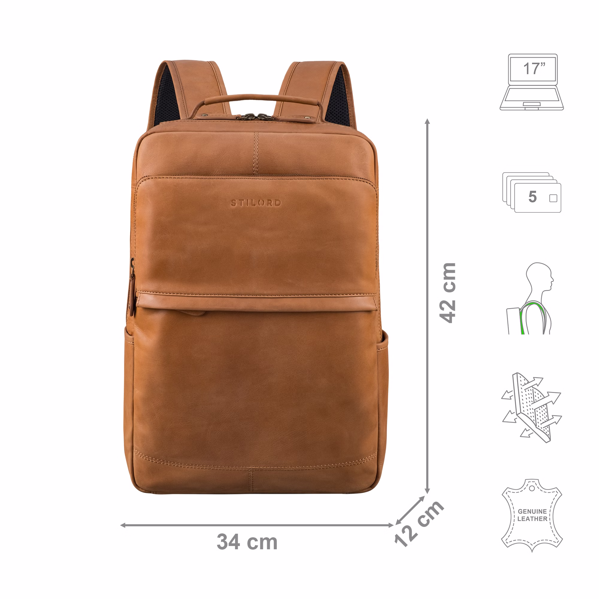 - DETALLES: Medidas: 34 x 12 x 42 | Peso: 990 g | Modelo: "Sasha" | Material: Cuero natural | Marca: STILORD | Compatibilidad: Laptop 13 14 15 15.6 16 17 pulgadas, A4 | Características especiales: espalda y correa de hombro acolchadas, asa de transporte, con compartimento para tarjetas