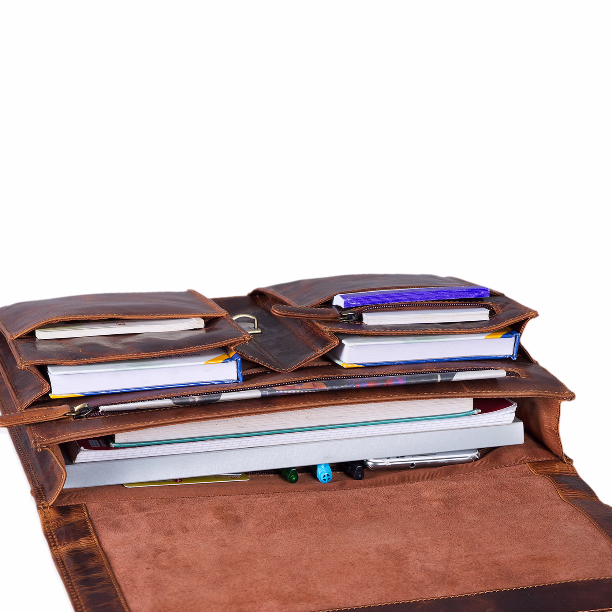 Este portafolio para conferencias de piel y estilo retro garantiza un aspecto elegante y a la vez espacio para todo lo que necesita en la oficina o en la vida cotidiana.