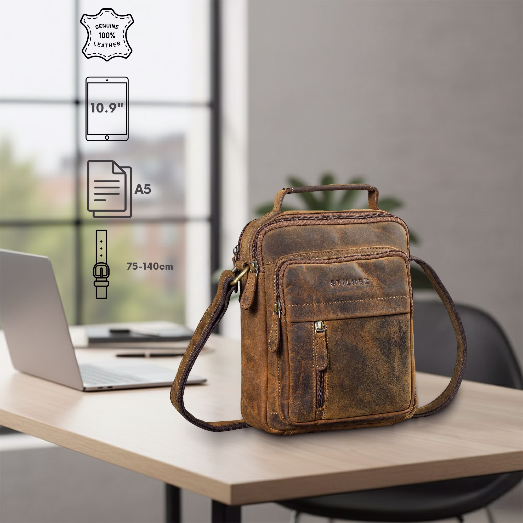 - DETALLES: Medidas (LxAnxAl): aprox. 21 x 8 x 33 cm | Peso: 425 g | Modelo: Ruben | Material: cuero auténtico | Fabricante: STILORD | Compatibilidad: funda tablet iPad hasta 10.9 pulgadas | Características: bolsillo antirrobo, asa de mano, correa ajustable 75 – 140 cm, espacio para DIN A5 y botella de 0,5 L